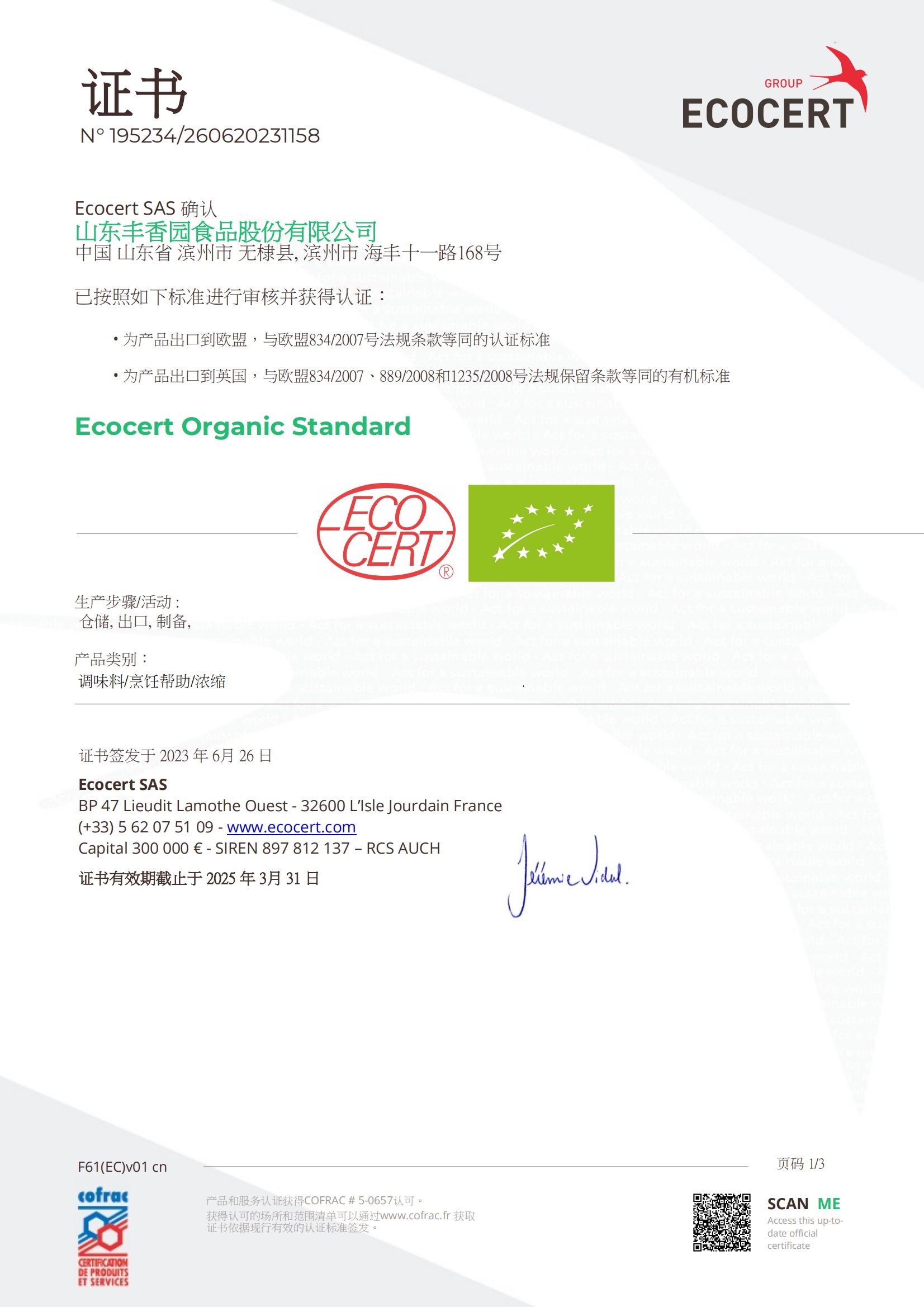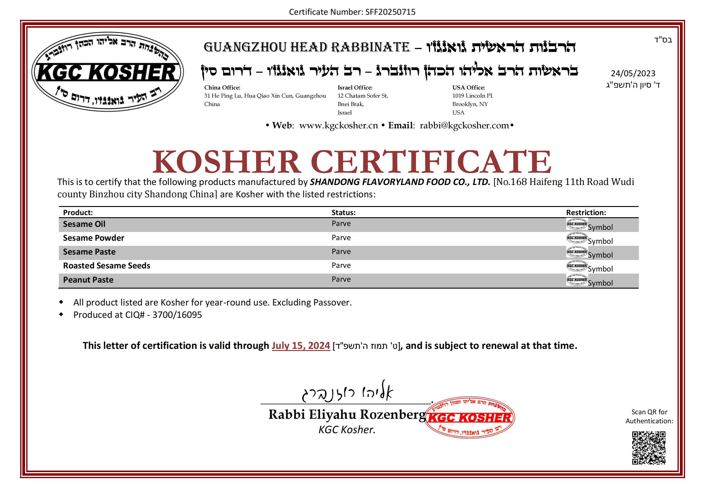 ? ? 豐香園小磨香油、芝麻調和油、花生醬、芝麻醬、混合醬、熟芝麻制品均已通過英國零售商協會BRC認證、歐盟 美國和國內有機、HACCP體系認證,是山東省出口食品備案企業(yè)。
